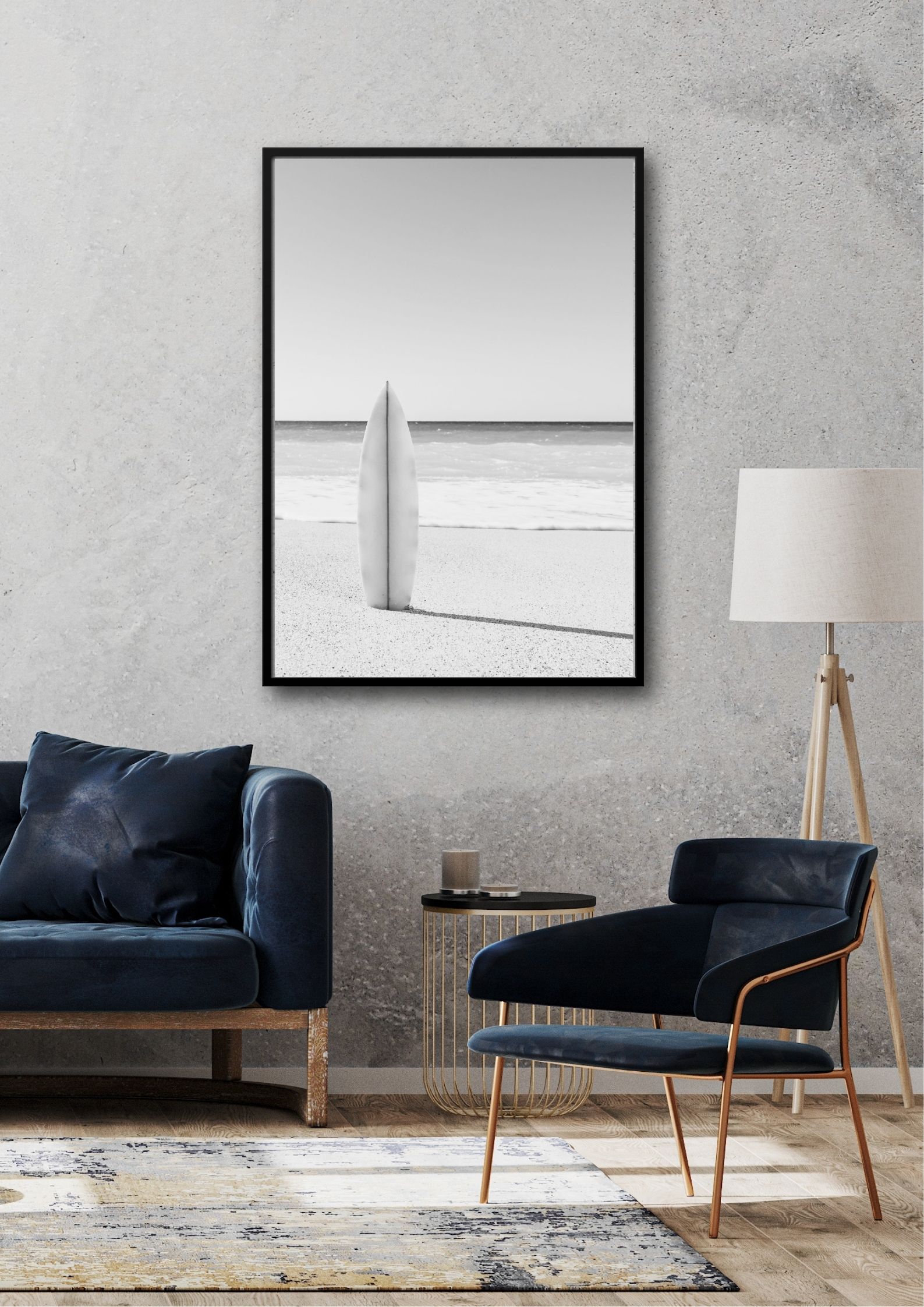 Tabla de surf en blanco y negro – Cuadro enmarcado